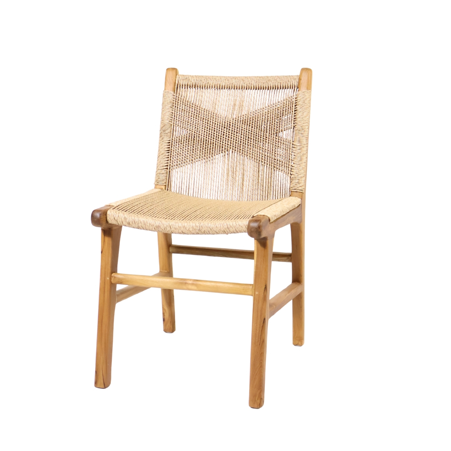 The Ana Tania Chair is a beautifully handcrafted teak wood chair, featuring a premium synthetic weaving in Euro Ash color. This weather-resistant material is carefully chosen for its durability and comfort, making it ideal for villas, cafés, and indoor-outdoor dining spaces in tropical climates.