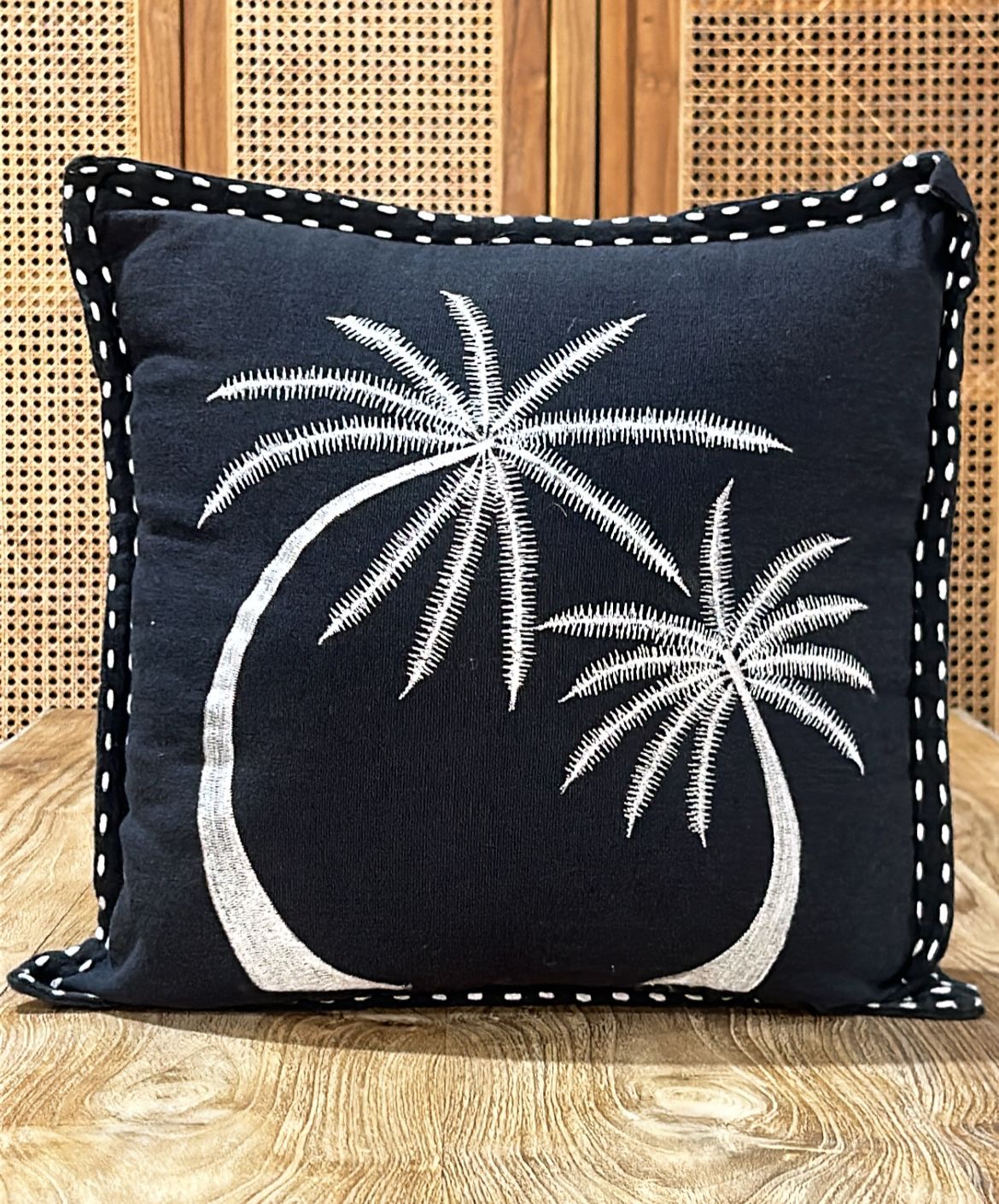 Palm Tree Black Pillow