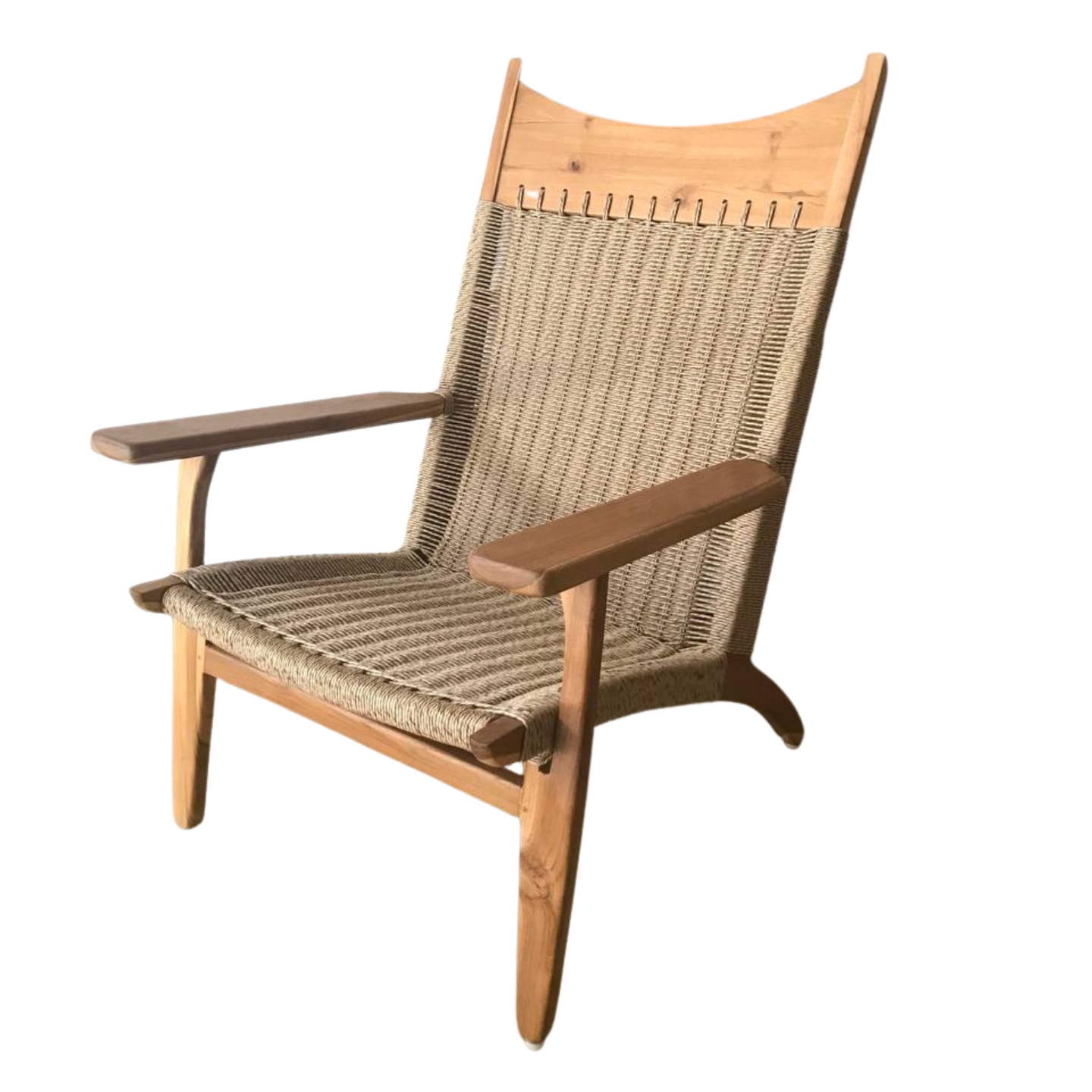 Kursi santai dengan desain kokoh dan anyaman hitam elegan, cocok untuk ruang tamu, ruang baca, atau teras.